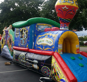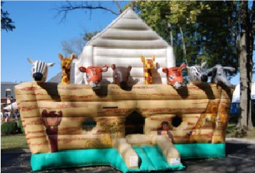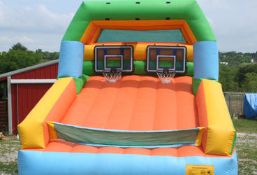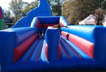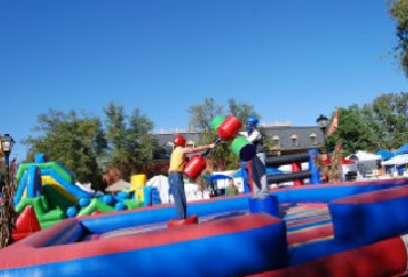A competitive game in which two opponents swing at each other using oversized joust poles to try to knock each other off their pedistals. Helmets are provided.