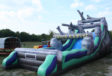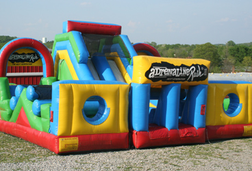 Two contestants wear a harness with a giant Bungee cord attached. As they run down the runway, they try to place velcro markers at the furthest point possible before the cord pulls them back.
